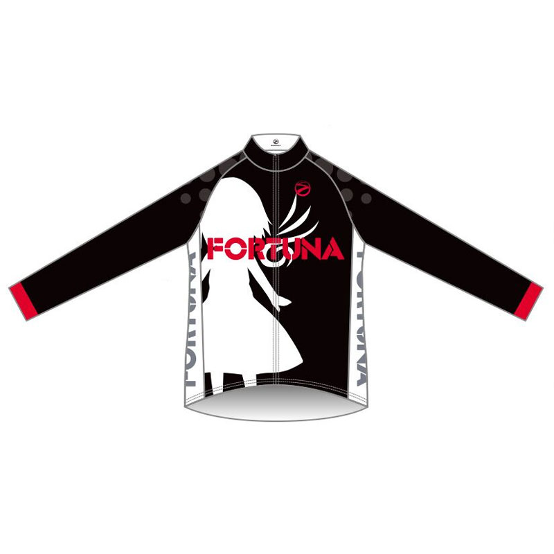 FORTUNAサイクルジャージの基本デザインはそのまま、袖を長袖仕様としたのがこのサマーロングスリーブバージョンです。アームカバーなしで日焼け対策が可能なため、女性サイクリストにもおすすめです!バックポケット内には、亜美・恵美・佐伯さんが隠れています。