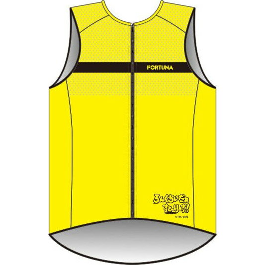 作中で主人公たちが着用するチーム・フォルトゥーナのサイクルジャージをベースにしつつ、バックポケット部表面にドット状に反射素材をプリントしました。後続車からのライトを反射し、夜間走行時の被視認性を高め安全走行をサポートします。バックポケット内には亜美(半べそ)・紗希&雛子(陰謀モード)・葵(光害号モード)が隠れています。