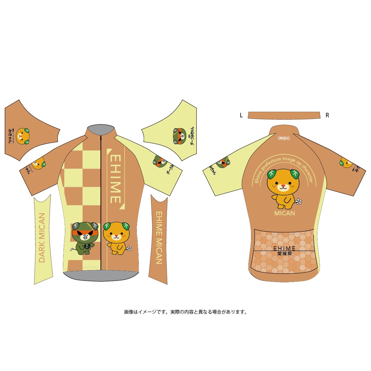 愛媛県キャラクター「みきゃん」のサイクルジャージです。