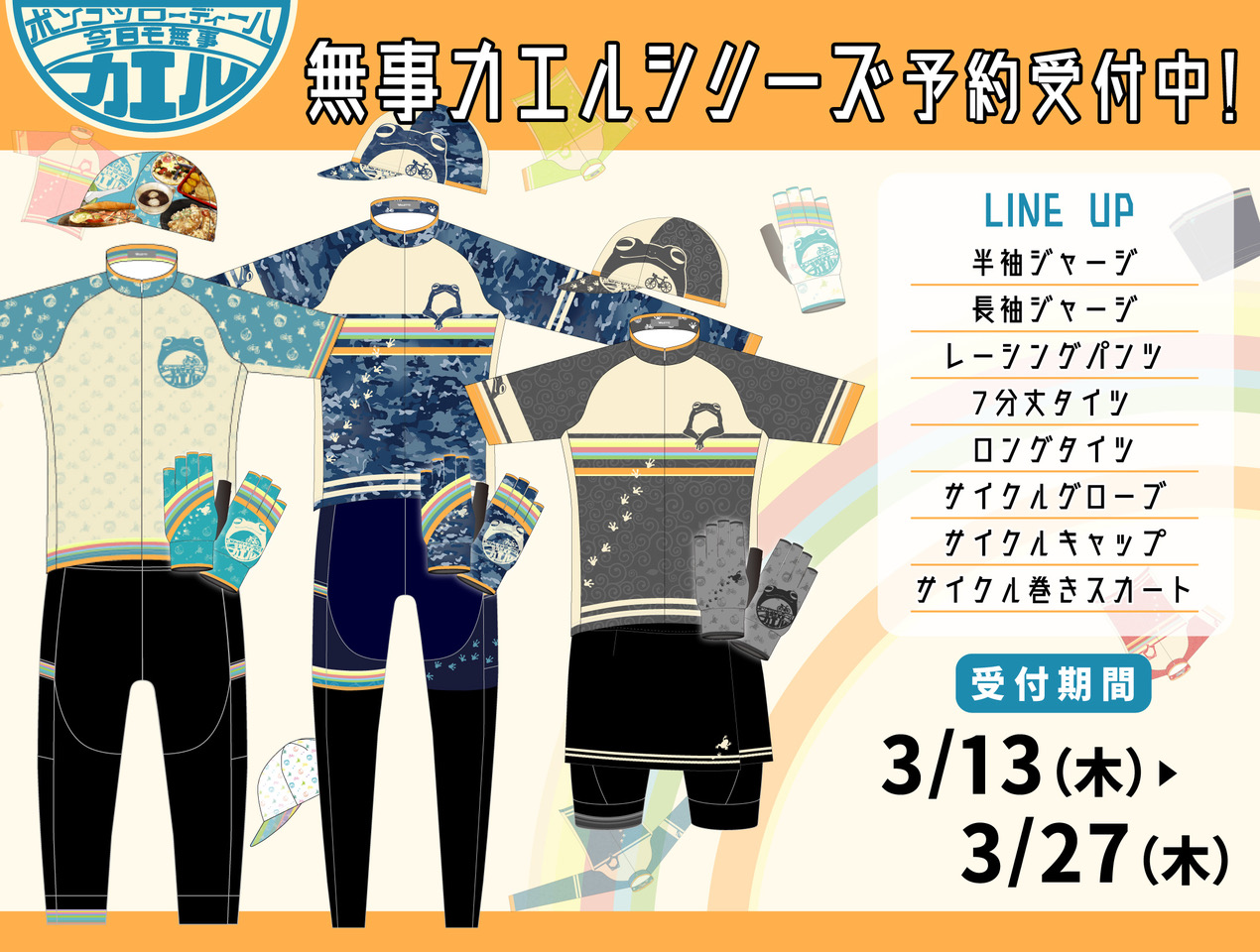 🐸#無事カエル印 春夏用ジャージ予約開始!!🐸UVカットに吸汗速乾素材で機能性も◎ハイウエストのビブやセパレートビブなどもご用意。キャップやグローブ、スカート等揃っておりますので覗いてみて下さいね✨チャリノリティシリーズも勿論予約出来ます🐸...